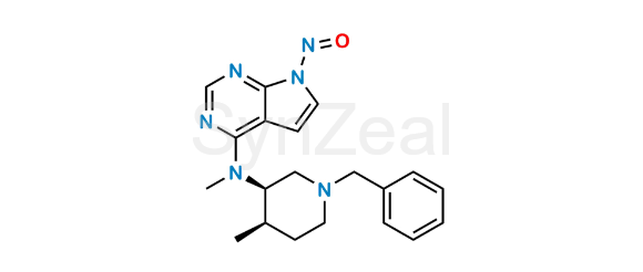 Tofacitinib N-Oxide Impurity 6 is chemically N-((3R,4R)-1-benzyl-4-methylpiperidin-3-yl)-N-methyl-7-nitroso-7H-pyrrolo[2,3-d]pyrimidin-4-amine. Tofacitinib N-Oxide Impurity 6 is supplied with detailed characterization data compliant with regulatory guideline. Tofacitinib N-Oxide Impurity 6 can be used for the analytical method development, method validation (AMV), Quality Controlled (QC) application for Abbreviated New Drug Application (ANDA) or during commercial production of Tofacitinib.