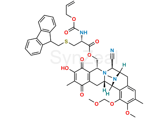 Trabectedin Impurity 13 is chemically ((6S,7R,9R,14aS,15R)-7-cyano-11-hydroxy-2-methoxy-1-(methoxymethoxy)-3,12,16-trimethyl-10,13-dioxo-6,7,9,10,13,14,14a,15-octahydro-5H-6,15-epiminobenzo[4,5]azocino[1,2-b]isoquinolin-9-yl)methyl S-((9H-fluoren-9-yl)methyl)-N-((allyloxy)carbonyl)-L-cysteinate. Trabectedin Impurity 13 is supplied with detailed characterization data compliant with regulatory guideline. Trabectedin Impurity 13 can be used for the analytical method development, method validation (AMV), Quality Controlled (QC) application for Abbreviated New Drug Application (ANDA) or during commercial production of Trabectedin.