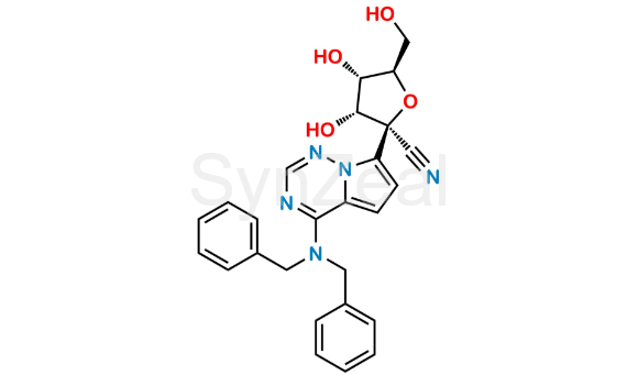 Tri Ol N-dibenzyl Remdesivir Impurity is chemically (2R,3R,4S,5R)-2-(4-(Dibenzylamino)pyrrolo[2,1-f][1,2,4]triazin-7-yl)-3,4-dihydroxy-5-(hydroxymethyl)tetrahydrofuran-2-carbonitrile. Tri Ol N-dibenzyl Remdesivir Impurity is supplied with detailed characterization data compliant with regulatory guideline. Tri Ol N-dibenzyl Remdesivir Impurity can be used for the analytical method development, method validation (AMV), Quality Controlled (QC) application for Abbreviated New Drug Application (ANDA) or during commercial production of Remdesivir.