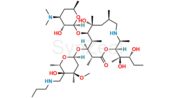 Nome Químico: (2S,3S,6R,8R,9R,10S,11S,12R)-2-((2R,3R)-2,3-dihydroxypentan-2-yl)-9-(((2S,3R,4S,6R)-4-(dimethylamino)-3-hydroxy-6-methyltetrahydro-2H-pyran-2-yl)oxy)-8-hydroxy-11-(((2R,4R,5S,6S)-5-hydroxy-4-methoxy-4,6-dimethyl-5-((propylamino)methyl)tetrahydro-2H-pyran-2-yl)oxy)-3,6,8,10,12-pentamethyl-1-oxa-4-azacyclotridecan-13-one