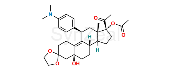 Nome Químico: (11Beta-[4-(Dimethylamino)phenyl]-5alpha-hydroxy-20-oxospiro{19-norpregna-9-en-3,2'-[1,3]dioxolan}-17-yl acetate) (as per USP)