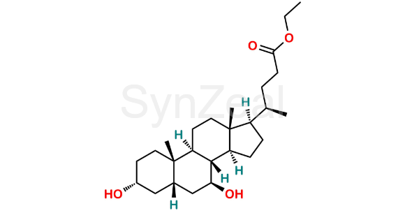 Ursodeoxycholic Acid Ethyl Ester is chemically Ethyl (R)-4-((3R,5S,7S,8R,9S,10S,13R,14S,17R)-3,7-dihydroxy-10,13-dimethylhexadecahydro-1H-cyclopenta[a]phenanthren-17-yl)pentanoate. Ursodeoxycholic Acid Ethyl Ester is supplied with detailed characterization data compliant with regulatory guideline. Ursodeoxycholic Acid Ethyl Ester can be used for the analytical method development, method validation (AMV), Quality Controlled (QC) application for Abbreviated New Drug Application (ANDA) or during commercial production of Ursodeoxycholic.