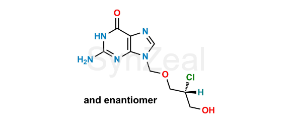 Nome Químico: 2-Amino-9-[[(2RS)-2-chloro-3-hydroxypropoxy]methyl]-1,9-dihydro-6H-purin-6-one (as per EP) ; 2-Amino-9-[(2-chloro-3-hydroxypropoxy)methyl]-1,9-dihydro-6H-purin-6-one (as per USP)