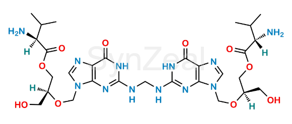 Nome Químico: (2R)-3-hydroxy-2-[[2-[[[[9-[[[(2S)-1-hydroxy-3-(L-valyloxy)propan-2-yl]oxy]methyl]-6-oxo-1,6-dihydro-9H-purin-2-yl]amino]methyl]amino]-6-oxo-1,6-dihydro-9H-purin-9-yl]methoxy]propyl L-valinate (as per EP)