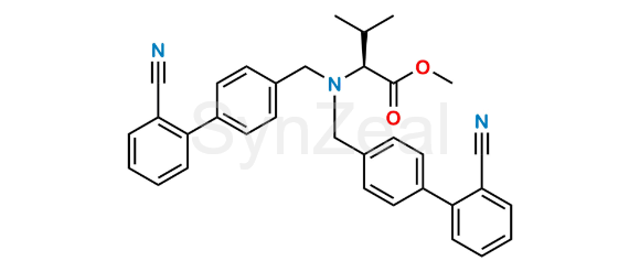Valsartan Dimer Impurity is chemically Methyl bis((2'-cyano-[1,1'-biphenyl]-4-yl)methyl)-L-valinate. Valsartan Dimer Impurity is supplied with detailed characterization data compliant with regulatory guideline. Valsartan Dimer Impurity can be used for the analytical method development, method validation (AMV), Quality Controlled (QC) application for Abbreviated New Drug Application (ANDA) or during commercial production of Valsartan .