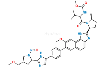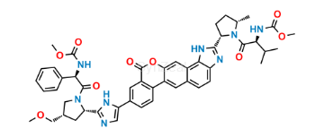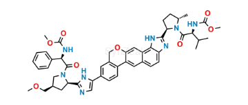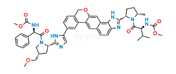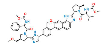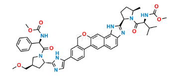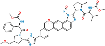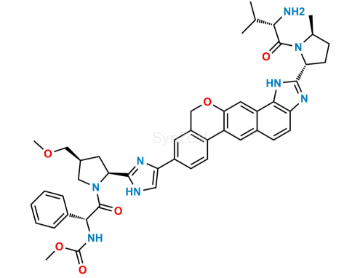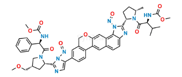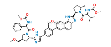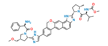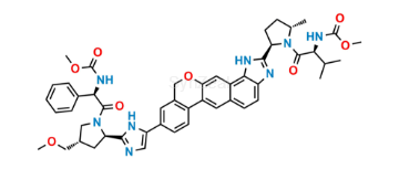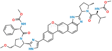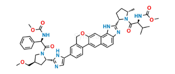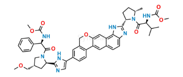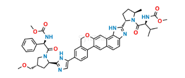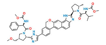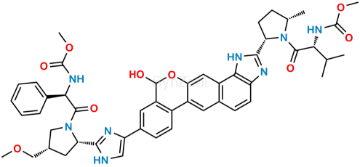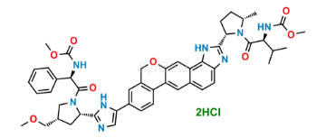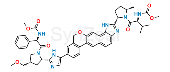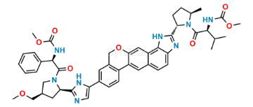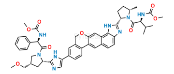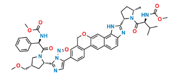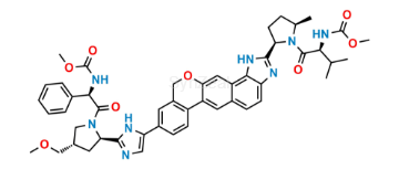 Nome Químico: Methyl ((R)-2-((2S,4S)-2-(5-(2-((2S,5S)-1-((methoxycarbonyl)-L-valyl)-5-methylpyrrolidin-2-yl)-1,11-dihydroisochromeno[4',3':6,7]naphtho[1,2-d]imidazol-9-yl)-1H-imidazol-2-yl)-4-(methoxymethyl)pyrrolidin-1-yl)-2-oxo-1-phenylethyl)carbamate