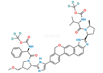 Velpatasvir is chemically Methyl ((R)-2-((2S,4S)-2-(5-(2-((2S,5S)-1-((methoxycarbonyl)-L-valyl)-5-methylpyrrolidin-2-yl)-1,11-dihydroisochromeno[4',3':6,7]naphtho[1,2-d]imidazol-9-yl)-1H-imidazol-2-yl)-4-(methoxymethyl)pyrrolidin-1-yl)-2-oxo-1-phenylethyl)carbamate. Velpatasvir is supplied with detailed characterization data compliant with regulatory guideline. Velpatasvir can be used for the analytical method development, method validation (AMV), Quality Controlled (QC) application for Abbreviated New Drug Application (ANDA) or during commercial production of Velpatasvir.