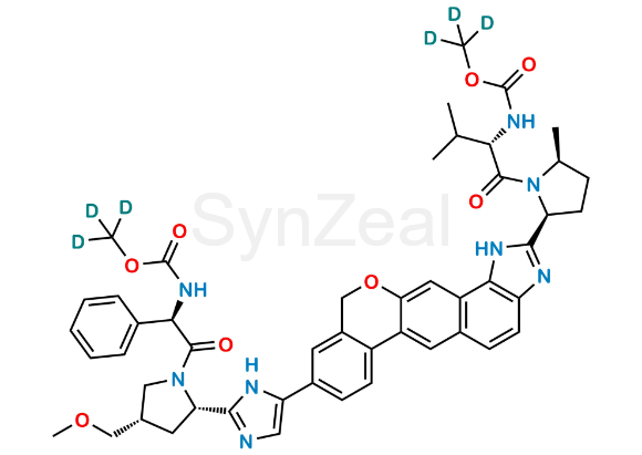 Nome Químico: Methyl-d3 ((S)-1-((2S,5S)-2-(9-(2-((2S,4S)-1-((R)-2-(((methoxy-d3)carbonyl)amino)-2-phenylacetyl)-4-(methoxymethyl)pyrrolidin-2-yl)-1H-imidazol-5-yl)-1,11-dihydroisochromeno[4',3':6,7]naphtho[1,2-d]imidazol-2-yl)-5-methylpyrrolidin-1-yl)-3-methyl-1-oxobutan-2-yl)carbamate