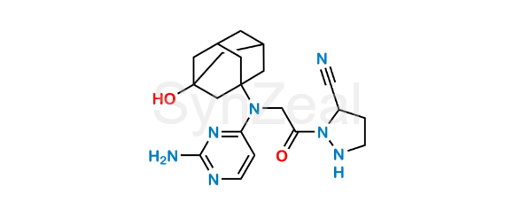 Vildagliptin Impurity 55 is chemically 2-(N-(2-aminopyrimidin-4-yl)-N-(3-hydroxyadamantan-1-yl)glycyl)pyrazolidine-3-carbonitrile. Vildagliptin Impurity 55 is supplied with detailed characterization data compliant with regulatory guideline. Vildagliptin Impurity 55 can be used for the analytical method development, method validation (AMV), Quality Controlled (QC) application for Abbreviated New Drug Application (ANDA) or during commercial production of Vildagliptin.