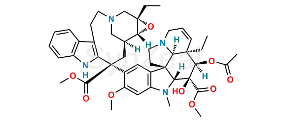 Nome Químico: Methyl (3aR,4R,5S,5aR,10bR,13aR)-4-(acetyloxy)-3a-ethyl-9-[(1aS,11S,13S,13aR)-1a-ethyl-11-(methoxycarbonyl)-1a,4,5,10,11,12,13,13a-octahydro-2H-3,13-methano-oxireno[9,10]azacycloundecino[5,4-b]indol-11-yl]-5-hydroxy-8-methoxy-6-methyl-3a,4,5,5a,6,11,12,13a-octahydro-1H-indolizino[8,1-cd]carbazole-5-carboxylate (as per EP)