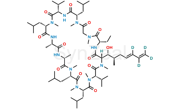 Voclosporin-D4 is chemically (3S,6S,9S,12R,15S,18S,21S,24S,30S,33S)-30-ethyl-33-((1R,2R,E)-1-hydroxy-2-methylhepta-4,6-dien-1-yl-5,6,7,7-d4)-6,9,18,24-tetraisobutyl-3,21-diisopropyl-1,4,7,10,12,15,19,25,28-nonamethyl-1,4,7,10,13,16,19,22,25,28,31-undecaazacyclotritriacontan-2,5,8,11,14,17,20,23,26,29,32-undecaone. Voclosporin-D4 is supplied with detailed characterization data compliant with regulatory guideline. Voclosporin-D4 can be used for the analytical method development, method validation (AMV), Quality Controlled (QC) application for Abbreviated New Drug Application (ANDA) or during commercial production of Voclosporin.