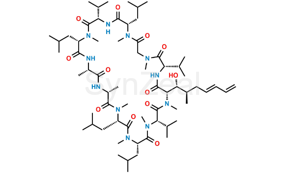 Voclosporin Impurity 1 is chemically (3S,6S,9S,12R,15S,18S,21S,24S,30S,33S)-33-((1R,2R,E)-1-hydroxy-2-methylhepta-4,6-dien-1-yl)-6,9,18,24-tetraisobutyl-3,21,30-triisopropyl-1,4,7,10,12,15,19,25,28-nonamethyl-1,4,7,10,13,16,19,22,25,28,31-undecaazacyclotritriacontan-2,5,8,11,14,17,20,23,26,29,32-undecaone. Voclosporin Impurity 1 is supplied with detailed characterization data compliant with regulatory guideline. Voclosporin Impurity 1 can be used for the analytical method development, method validation (AMV), Quality Controlled (QC) application for Abbreviated New Drug Application (ANDA) or during commercial production of Voclosporin.