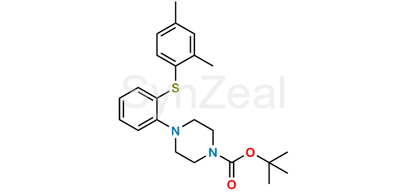 Vortioxetine Impurity 55 is chemically Tert-butyl 4-(2-((2,4-dimethylphenyl)thio)phenyl)piperazine-1-carboxylate. Vortioxetine Impurity 55 is supplied with detailed characterization data compliant with regulatory guideline. Vortioxetine Impurity 55 can be used for the analytical method development, method validation (AMV), Quality Controlled (QC) application for Abbreviated New Drug Application (ANDA) or during commercial production of Vortioxetine.