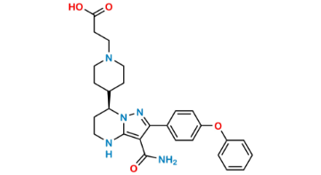 Zanubrutinib 5-Piperidinyl Impurity is chemically (S)-5-(1-acryloylpiperidin-4-yl)-2-(4-phenoxyphenyl)-4,5,6,7-tetrahydropyrazolo[1,5-a]pyrimidine-3-carboxamide. Zanubrutinib 5-Piperidinyl Impurity is supplied with detailed characterization data compliant with regulatory guideline. Zanubrutinib 5-Piperidinyl Impurity can be used for the analytical method development, method validation (AMV), Quality Controlled (QC) application for Abbreviated New Drug Application (ANDA) or during commercial production of Zanubrutinib.