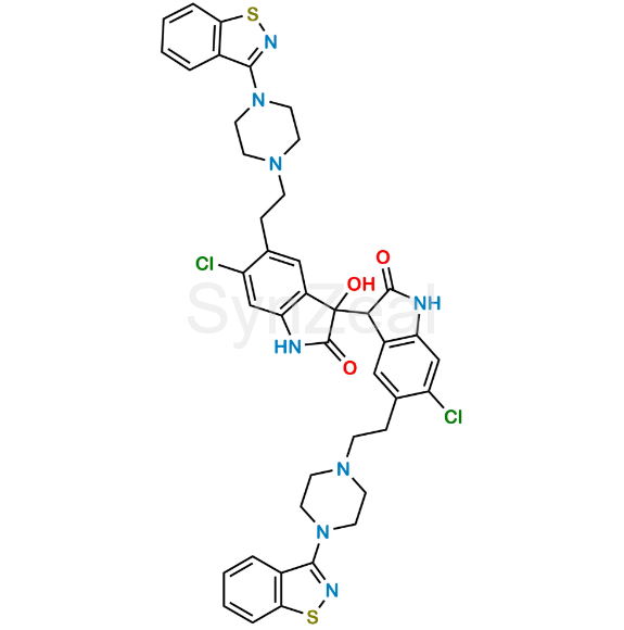 Nome Químico: 5,5'-Bis[2-[4-(1,2-benzisothiazol-3-yl)piperazin-1-yl]ethyl]-6,6'-dichloro-3-hydroxy-1,1',3,3'-tetrahydro-2H,2'H-3,3'-biindole-2,2'-dione (as per EP) ; 5,5′-Bis{2-[4-(benzoisothiazol-3-yl)piperazin-1-yl]ethyl}-6,6′-dichloro-3-hydroxy-3,3′-biindoline-2,2′-dione (as per USP)