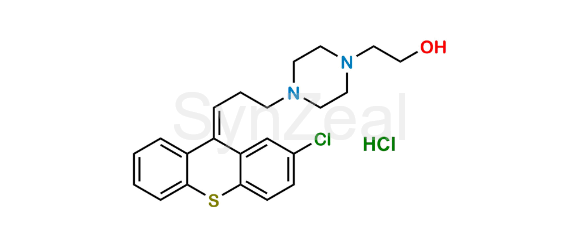 Zuclopenthixol Hydrochloride is chemically (Z)-2-(4-(3-(2-chloro-9H-thioxanthen-9-ylidene)propyl)piperazin-1-yl)ethan-1-ol hydrochloride. Zuclopenthixol Hydrochloride is supplied with detailed characterization data compliant with regulatory guideline. Zuclopenthixol Hydrochloride can be used for the analytical method development, method validation (AMV), Quality Controlled (QC) application for Abbreviated New Drug Application (ANDA) or during commercial production of Zuclopenthixol.