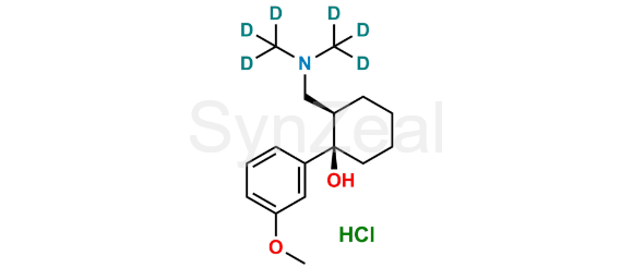 (+)-Tramadol-D6 Hydrochloride is chemically (1R,2R)-2-((Bis(methyl-d3)amino)methyl)-1-(3-methoxyphenyl)cyclohexan-1-ol hydrochloride. (+)-Tramadol-D6 Hydrochloride is supplied with detailed characterization data compliant with regulatory guideline. (+)-Tramadol-D6 Hydrochloride can be used for the analytical method development, method validation (AMV), Quality Controlled (QC) application for Abbreviated New Drug Application (ANDA) or during commercial production of Tramadol.