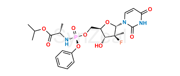 2'-S-Fluoro Sofosbuvir Alpha-Isomer is chemically Isopropyl ((S)-(((2R,3R,4S,5S)-5-(2,4-dioxo-3,4-dihydropyrimidin-1(2H)-yl)-4-fluoro-3-hydroxy-4-methyltetrahydrofuran-2-yl)methoxy)(phenoxy)phosphoryl)-L-alaninate. 2'-S-Fluoro Sofosbuvir Alpha-Isomer is supplied with detailed characterization data compliant with regulatory guideline. 2'-S-Fluoro Sofosbuvir Alpha-Isomer can be used for the analytical method development, method validation (AMV), Quality Controlled (QC) application for Abbreviated New Drug Application (ANDA) or during commercial production of Sofosbuvir.