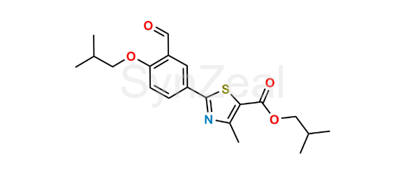 3-Descyano-3-Formyl Febuxostat Isobutyl Ester is chemically Isobutyl 2-(3-formyl-4-isobutoxyphenyl)-4-methylthiazole-5-carboxylate. 3-Descyano-3-Formyl Febuxostat Isobutyl Ester is supplied with detailed characterization data compliant with regulatory guideline. 3-Descyano-3-Formyl Febuxostat Isobutyl Ester can be used for the analytical method development, method validation (AMV), Quality Controlled (QC) application for Abbreviated New Drug Application (ANDA) or during commercial production of Febuxostat.