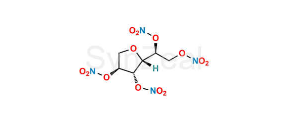 3,6-Anhydroglucitol Tetranitrate is chemically (S)-1-((2R,3S,4S)-3,4-Bis(nitrooxy)tetrahydrofuran-2-yl)ethane-1,2-diyl dinitrate. 3,6-Anhydroglucitol Tetranitrate is supplied with detailed characterization data compliant with regulatory guideline. 3,6-Anhydroglucitol Tetranitrate can be used for the analytical method development, method validation (AMV), Quality Controlled (QC) application for Abbreviated New Drug Application (ANDA) or during commercial production of Isosorbide Dinitrate.