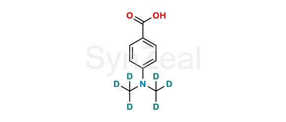 4-Dimethylamino Benzoic Acid-d6 is chemically Benzoic acid, 4-[di(methyl-d3)amino]-. 4-Dimethylamino Benzoic Acid-d6 is supplied with detailed characterization data compliant with regulatory guideline. 4-Dimethylamino Benzoic Acid-d6 can be used for the analytical method development, method validation (AMV), Quality Controlled (QC) application for Abbreviated New Drug Application (ANDA) or during commercial production of Benzoic Acid.