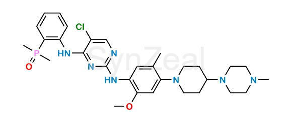 5-Methyl Brigatinib is chemically (2-((5-Chloro-2-((2-methoxy-5-methyl-4-(4-(4-methylpiperazin-1-yl)piperidin-1-yl)phenyl)amino)pyrimidin-4-yl)amino)phenyl)dimethylphosphine oxide. 5-Methyl Brigatinib is supplied with detailed characterization data compliant with regulatory guideline. 5-Methyl Brigatinib can be used for the analytical method development, method validation (AMV), Quality Controlled (QC) application for Abbreviated New Drug Application (ANDA) or during commercial production of Brigatinib.