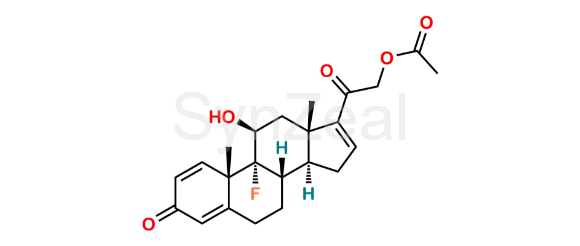 9-Alfa-fluoro Triene 21-Acetate is chemically 2-((8S,9R,10S,11S,13S,14S)-9-Fluoro-11-hydroxy-10,13-dimethyl-3-oxo-6,7,8,9,10,11,12,13,14,15-decahydro-3H-cyclopenta[a]phenanthren-17-yl)-2-oxoethyl acetate. 9-Alfa-fluoro Triene 21-Acetate is supplied with detailed characterization data compliant with regulatory guideline. 9-Alfa-fluoro Triene 21-Acetate can be used for the analytical method development, method validation (AMV), Quality Controlled (QC) application for Abbreviated New Drug Application (ANDA) or during commercial production of Triamcinolone Acetonide.