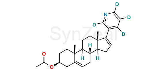 Abiraterone Acetate D4 is chemically (3S,8R,9S,10R,13S,14S)-10,13-Dimethyl-17-(pyridin-3-yl-d4)-2,3,4,7,8,9,10,11,12,13,14,15-dodecahydro-1H-cyclopenta[a]phenanthren-3-yl acetate. Abiraterone Acetate D4 is supplied with detailed characterization data compliant with regulatory guideline. Abiraterone Acetate D4 can be used for the analytical method development, method validation (AMV), Quality Controlled (QC) application for Abbreviated New Drug Application (ANDA) or during commercial production of Abiraterone Acetate.