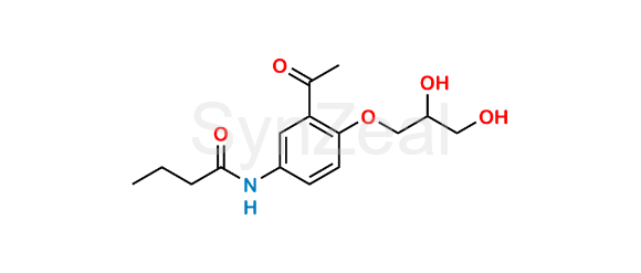 Acebutolol EP Impurity F is chemically N-[3-Acetyl-4-[(2RS)-2,3-dihydroxypropoxy] phenyl]butanamide (as per EP). It is also known as Acebutolol Diol . Acebutolol EP Impurity F is supplied with detailed characterization data compliant with regulatory guideline. Acebutolol EP Impurity F can be used for the analytical method development, method validation (AMV), Quality Controlled (QC) application for Abbreviated New Drug Application (ANDA) or during commercial production of Acebutolol.