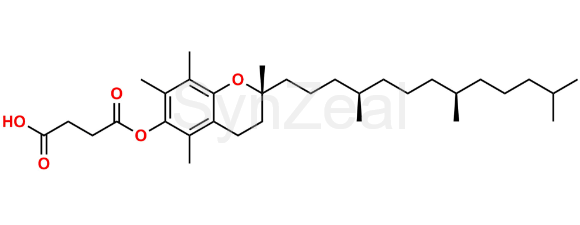 Alpha Tocopheryl Acid Succinate is chemically 4-Oxo-4-(((R)-2,5,7,8-tetramethyl-2-((4R,8R)-4,8,12-trimethyltridecyl)chroman-6-yl)oxy)butanoic acid. It is also known as Vitamin E Succinate. Alpha Tocopheryl Acid Succinate is supplied with detailed characterization data compliant with regulatory guideline. Alpha Tocopheryl Acid Succinate can be used for the analytical method development, method validation (AMV), Quality Controlled (QC) application for Abbreviated New Drug Application (ANDA) or during commercial production of Tocopheryl acetate.