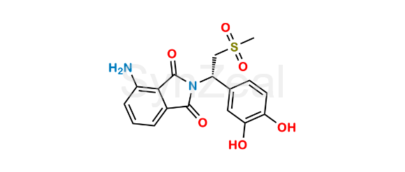 Apremilast Impurity 11 is chemically (S)-4-Amino-2-(1-(3,4-dihydroxyphenyl)-2-(methylsulfonyl)ethyl)isoindoline-1,3-dione. It is also known as N-Desacetyl O4-Desmethyl O3-Desethyl Apremilast ;. Apremilast Impurity 11 is supplied with detailed characterization data compliant with regulatory guideline. Apremilast Impurity 11 can be used for the analytical method development, method validation (AMV), Quality Controlled (QC) application for Abbreviated New Drug Application (ANDA) or during commercial production of Apremilast.