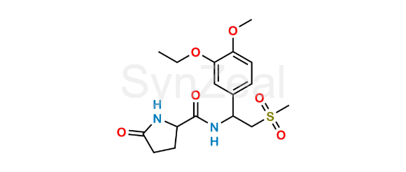Apremilast Impurity 48 is chemically N-(1-(3-Ehoxy-4-methoxyphenyl)-2-(methylsulfonyl)ethyl)-5-oxopyrrolidine-2-carboxamide. Apremilast Impurity 48 is supplied with detailed characterization data compliant with regulatory guideline. Apremilast Impurity 48 can be used for the analytical method development, method validation (AMV), Quality Controlled (QC) application for Abbreviated New Drug Application (ANDA) or during commercial production of Apremilast.