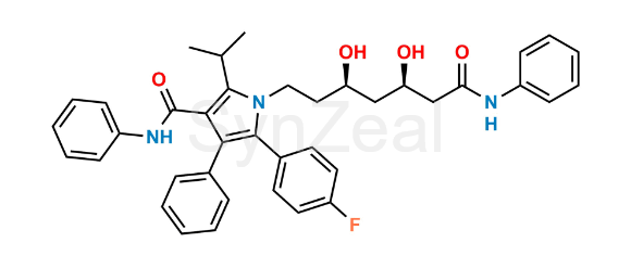 Atorvastatin Phenyl Amino Impurity is chemically 1-((3R,5R)-3,5-Dihydroxy-7-oxo-7-(phenylamino)heptyl)-5-(4-fluorophenyl)-2-isopropyl-N,4-diphenyl-1H-pyrrole-3-carboxamide. Atorvastatin Phenyl Amino Impurity is supplied with detailed characterization data compliant with regulatory guideline. Atorvastatin Phenyl Amino Impurity can be used for the analytical method development, method validation (AMV), Quality Controlled (QC) application for Abbreviated New Drug Application (ANDA) or during commercial production of Atorvastatin.