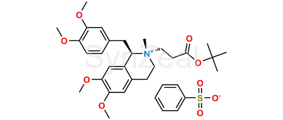 Atracurium Impurity 11 is chemically (1R,2S)-2-(3-(tert-butoxy)-3-oxopropyl)-1-(3,4-dimethoxybenzyl)-6,7-dimethoxy-2-methyl-1,2,3,4-tetrahydroisoquinolin-2-ium benzenesulfonate. Atracurium Impurity 11 is supplied with detailed characterization data compliant with regulatory guideline. Atracurium Impurity 11 can be used for the analytical method development, method validation (AMV), Quality Controlled (QC) application for Abbreviated New Drug Application (ANDA) or during commercial production of Atracurium.