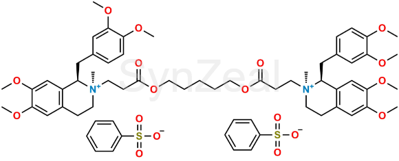 Atracurium Impurity 6 is chemically (1S,2S)-1-(3,4-dimethoxybenzyl)-2-(3-((5-((3-((1R,2R)-1-(3,4-dimethoxybenzyl)-6,7-dimethoxy-2-methyl-1,2,3,4-tetrahydroisoquinolin-2-ium-2-yl)propanoyl)oxy)pentyl)oxy)-3-oxopropyl)-6,7-dimethoxy-2-methyl-1,2,3,4-tetrahydroisoquinolin-2-ium benzenesulfonate. Atracurium Impurity 6 is supplied with detailed characterization data compliant with regulatory guideline. Atracurium Impurity 6 can be used for the analytical method development, method validation (AMV), Quality Controlled (QC) application for Abbreviated New Drug Application (ANDA) or during commercial production of Atracurium.