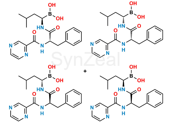 Bortezomib Stereo Isomers Mixture is chemically ((R)-3-Methyl-1-((R)-3-phenyl-2-(pyrazine-2-carboxamido)propanamido)butyl)boronic acid compound with ((R)-3-Methyl-1-((S)-3-phenyl-2-(pyrazine-2-carboxamido)propanamido)butyl)boronic acid and ((S)-3-methyl-1-((R)-3-phenyl-2-(pyrazine-2-carboxamido)propanamido)butyl)boronic acid and ((S)-3-methyl-1-((S)-3-phenyl-2-(pyrazine-2-carboxamido)propanamido)butyl)boronic acid (1:1:1:1). Bortezomib Stereo Isomers Mixture is supplied with detailed characterization data compliant with regulatory guideline. Bortezomib Stereo Isomers Mixture can be used for the analytical method development, method validation (AMV), Quality Controlled (QC) application for Abbreviated New Drug Application (ANDA) or during commercial production of Bortezomib.
