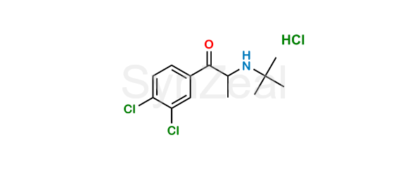 Bupropion 3,4-Dichloro Impurity is chemically 2-Ttert-Butylamino)-1-(3,4-dichlorophenyl)propan-1-one hydrochloride (as per USP) . Bupropion 3,4-Dichloro Impurity is supplied with detailed characterization data compliant with regulatory guideline. Bupropion 3,4-Dichloro Impurity can be used for the analytical method development, method validation (AMV), Quality Controlled (QC) application for Abbreviated New Drug Application (ANDA) or during commercial production of Bupropion.