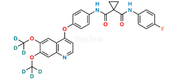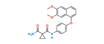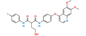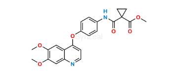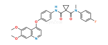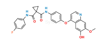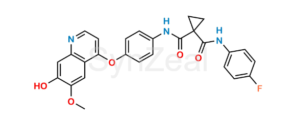 Cabozantinib Desmethyl Impurity 1 is chemically N-(4-Fluorophenyl)-N-(4-((7-hydroxy-6-methoxyquinolin-4-yl)oxy)phenyl)cyclopropane-1,1-dicarboxamide. Cabozantinib Desmethyl Impurity 1 is supplied with detailed characterization data compliant with regulatory guideline. Cabozantinib Desmethyl Impurity 1 can be used for the analytical method development, method validation (AMV), Quality Controlled (QC) application for Abbreviated New Drug Application (ANDA) or during commercial production of Cabozantinib.