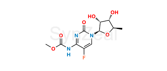 Capecitabine Impurity 6 is chemically Methyl [1-(5-Deoxy-β-D-ribofuranosyl)-5-fluoro-1,2-dihydro-2-ox-carbamic Acid Ester. It is also known as Capecitabine Impurity M . Capecitabine Impurity 6 is supplied with detailed characterization data compliant with regulatory guideline. Capecitabine Impurity 6 can be used for the analytical method development, method validation (AMV), Quality Controlled (QC) application for Abbreviated New Drug Application (ANDA) or during commercial production of Capecitabine.