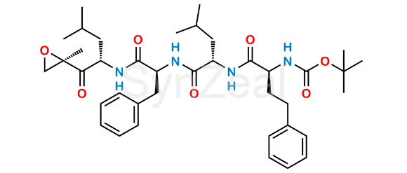 Carfilzomib Impurity 9 (RSSSS) is chemically (2R)-2-[(2S)-2-[[N-[(S)-2-(tert-Butoxycarbonylamino)-4-phenylbutanoyl]-L-leucyl-L-phenylalanyl]amino]-4-methylpentanoyl]-2-methyloxirane. Carfilzomib Impurity 9 (RSSSS) is supplied with detailed characterization data compliant with regulatory guideline. Carfilzomib Impurity 9 (RSSSS) can be used for the analytical method development, method validation (AMV), Quality Controlled (QC) application for Abbreviated New Drug Application (ANDA) or during commercial production of Carfilzomib.