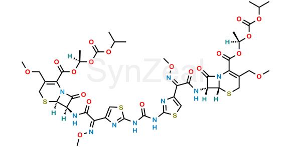 Cefpodoxime Proxetil Carbomyl Dimer is chemically Bis[(1RS)-[[(1-methylethoxy)carbonyl]oxy]ethyl](6R,7R,6'S,7'S)-7,7'-[carbonylbis[imidazole-2,4-diyl[(2Z)-2-(methoxyimino)-1-oxoethane-2,1-diyl]imino]]bis[3-(methoxymethyl)-8-oxo-5-thia-1-azabicylo[4.2.0]oct-2-ene-2-carboxylate]. Cefpodoxime Proxetil Carbomyl Dimer is supplied with detailed characterization data compliant with regulatory guideline. Cefpodoxime Proxetil Carbomyl Dimer can be used for the analytical method development, method validation (AMV), Quality Controlled (QC) application for Abbreviated New Drug Application (ANDA) or during commercial production of Cefpodoxime Proxetil.