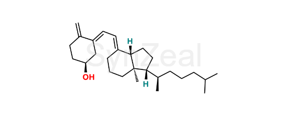 Cholecalciferol EP Impurity A is chemically (3S,5E,7E)-9,10-secocholesta-5,7,10(19)-trien-3-ol (as per EP). It is also known as Trans-Cholecalciferol (EP & USP) ; provitamin D3 (EP). Cholecalciferol EP Impurity A is supplied with detailed characterization data compliant with regulatory guideline. Cholecalciferol EP Impurity A can be used for the analytical method development, method validation (AMV), Quality Controlled (QC) application for Abbreviated New Drug Application (ANDA) or during commercial production of Cholecalciferol.