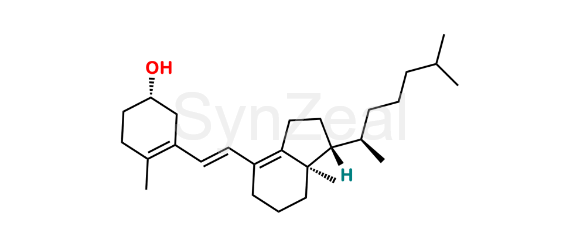 Cholecalciferol EP Impurity D is chemically (6E)-9,10-Secocholesta-5(10),6,8(14)-trien-3β-ol ; (S)-4-methyl-3-((E)-2-((1R,7aR)-7a-methyl-1-((R)-6-methylheptan-2-yl)-2,3,5,6,7,7a-hexahydro-1H-inden-4-yl)vinyl)cyclohex-3-en-1-ol) (as per USP). It is also known as Iso-Tachysterol 3 (EP & USP). Cholecalciferol EP Impurity D is supplied with detailed characterization data compliant with regulatory guideline. Cholecalciferol EP Impurity D can be used for the analytical method development, method validation (AMV), Quality Controlled (QC) application for Abbreviated New Drug Application (ANDA) or during commercial production of Cholecalciferol.