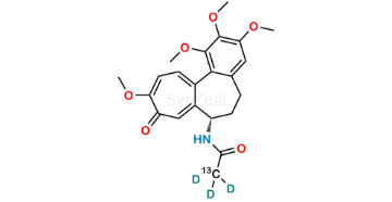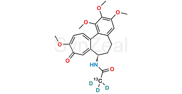 Colchicine 13C D3 is chemically (S)-N-(1,2,3,10-Tetramethoxy-9-oxo-5,6,7,9-tetrahydrobenzo[a]heptalen-7-yl)acetamide-2-13C-2,2,2-d3. Colchicine 13C D3 is supplied with detailed characterization data compliant with regulatory guideline. Colchicine 13C D3 can be used for the analytical method development, method validation (AMV), Quality Controlled (QC) application for Abbreviated New Drug Application (ANDA) or during commercial production of Colchicine.