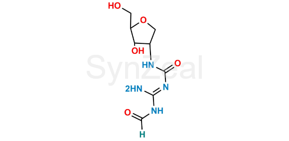 Decitabine Impurity 51 is chemically N-((E)-N'-(((3S,4S,5R)-4-hydroxy-5-(hydroxymethyl)tetrahydrofuran-3-yl)carbamoyl)carbamimidoyl)formamide. Decitabine Impurity 51 is supplied with detailed characterization data compliant with regulatory guideline. Decitabine Impurity 51 can be used for the analytical method development, method validation (AMV), Quality Controlled (QC) application for Abbreviated New Drug Application (ANDA) or during commercial production of Decitabine.