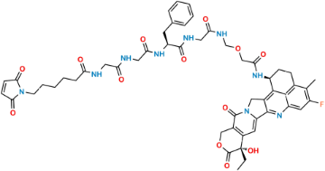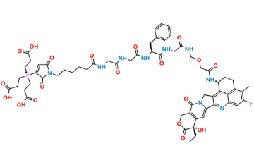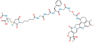 Deruxtecan Impurity 2 is chemically N-acetyl-S-(1-(6-((2-((2-(((S)-1-((2-(((2-(((1S,9S)-9-ethyl-5-fluoro-9-hydroxy-4-methyl-10,13-dioxo-2,3,9,10,13,15-hexahydro-1H,12H-benzo[de]pyrano[3',4':6,7]indolizino[1,2-b]quinolin-1-yl)amino)-2-oxoethoxy)methyl)amino)-2-oxoethyl)amino)-1-oxo-3-phenylpropan-2-yl)amino)-2-oxoethyl)amino)-2-oxoethyl)amino)-6-oxohexyl)-2,5-dioxopyrrolidin-3-yl)-L-cysteine. Deruxtecan Impurity 2 is supplied with detailed characterization data compliant with regulatory guideline. Deruxtecan Impurity 2 can be used for the analytical method development, method validation (AMV), Quality Controlled (QC) application for Abbreviated New Drug Application (ANDA) or during commercial production of Deruxtecan.