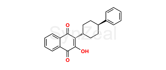 Deschloro Atovaquone is chemically 2-Hydroxy-3-((1r,4r)-4-phenylcyclohexyl)naphthalene-1,4-dione. Deschloro Atovaquone is supplied with detailed characterization data compliant with regulatory guideline. Deschloro Atovaquone can be used for the analytical method development, method validation (AMV), Quality Controlled (QC) application for Abbreviated New Drug Application (ANDA) or during commercial production of Atovaquone.