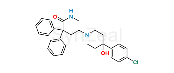 Desmethyl Loperamide is chemically 4-(4-(4-chlorophenyl)-4-hydroxypiperidin-1-yl)-N-methyl-2,2-diphenylbutanamide. Desmethyl Loperamide is supplied with detailed characterization data compliant with regulatory guideline. Desmethyl Loperamide can be used for the analytical method development, method validation (AMV), Quality Controlled (QC) application for Abbreviated New Drug Application (ANDA) or during commercial production of Loperamide.