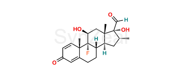 Dexamethasone Impurity 17 is chemically (8S,9R,10S,11S,13S,14S,16R,17R)-9-Fluoro-11,17-dihydroxy-10,13,16-trimethyl-3-oxo-6,7,8,9,10,11,12,13,14,15,16,17-dodecahydro-3H-cyclopenta[a]phenanthrene-17-carbaldehyde. Dexamethasone Impurity 17 is supplied with detailed characterization data compliant with regulatory guideline. Dexamethasone Impurity 17 can be used for the analytical method development, method validation (AMV), Quality Controlled (QC) application for Abbreviated New Drug Application (ANDA) or during commercial production of Dexamethasone.
