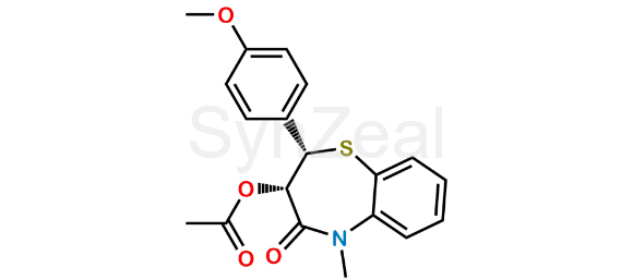 Diltiazem DTZ-I Impurity is chemically (2S,3S)-2-(4-Methoxyphenyl)-5-methyl-4-oxo-2,3,4,5-tetrahydrobenzo[b][1,4]thiazepin-3-yl acetate. Diltiazem DTZ-I Impurity is supplied with detailed characterization data compliant with regulatory guideline. Diltiazem DTZ-I Impurity can be used for the analytical method development, method validation (AMV), Quality Controlled (QC) application for Abbreviated New Drug Application (ANDA) or during commercial production of Diltiazem.